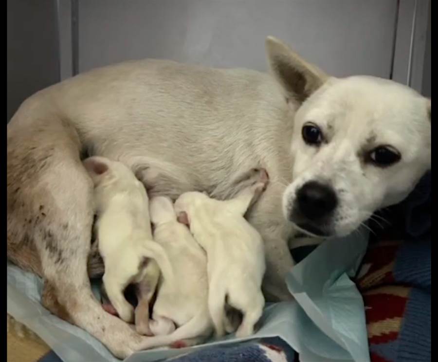 而在去醫院的途中,狗媽媽竟還想要逃走。最后順利讓狗媽媽和小狗在醫院團聚了,它還沒怎麼適應當媽媽,或許它覺得當流浪狗自己都吃不飽,更沒法養活它們吧!不過在學生們和醫生的照顧下,狗媽媽終于是放下了所有的戒備,并認真照顧起小狗來了。