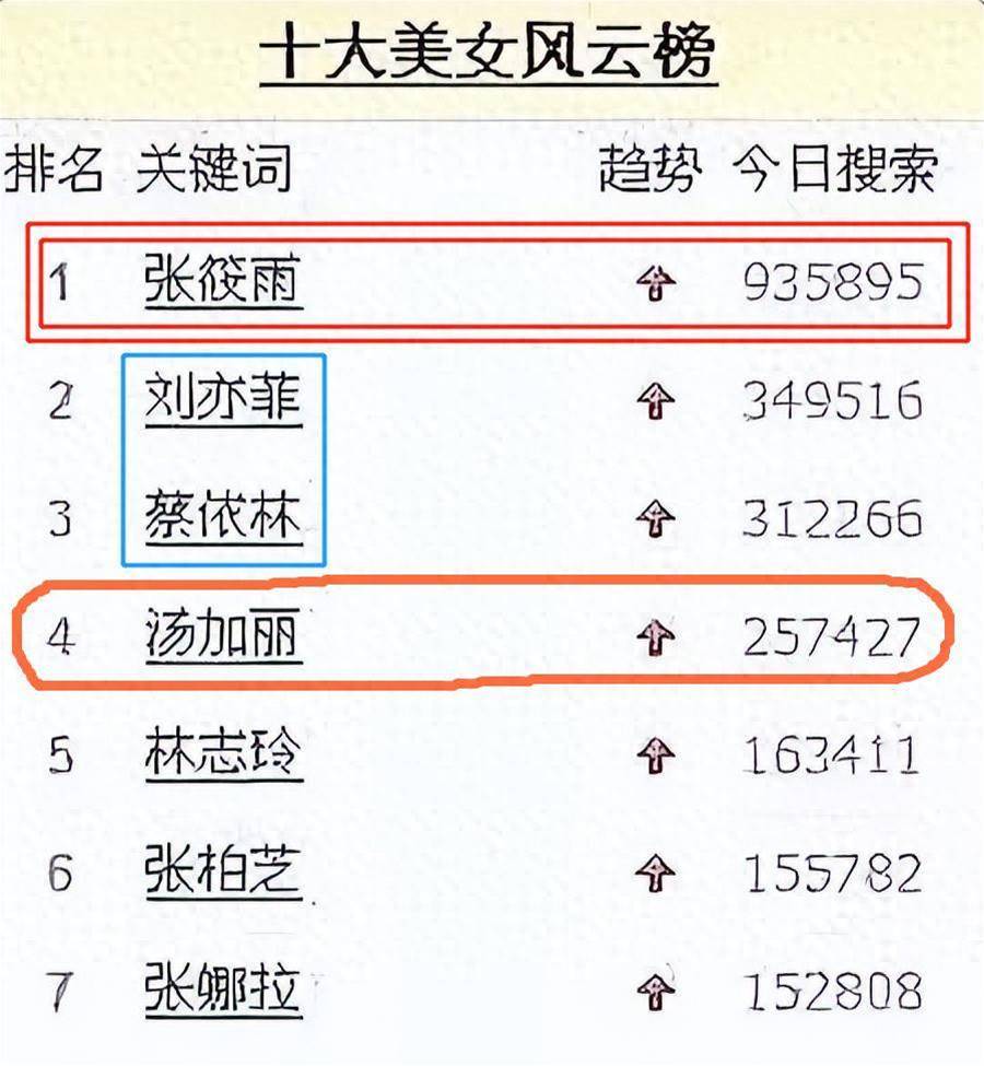 不過,《張筱雨》的搜索量和熱度都超越了劉亦菲,位居榜首。